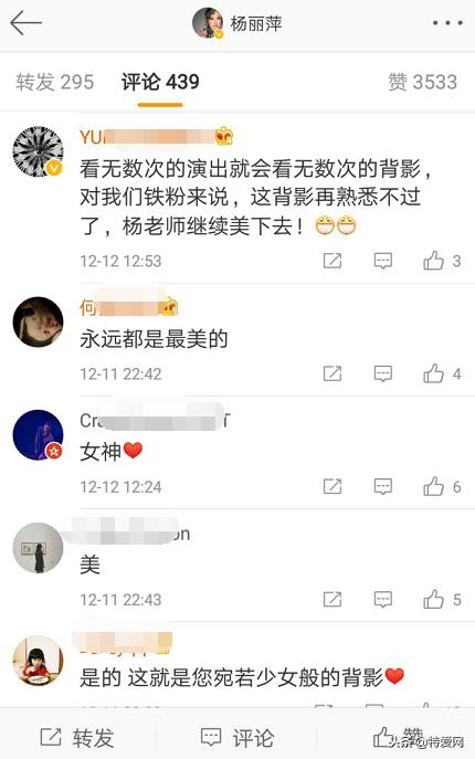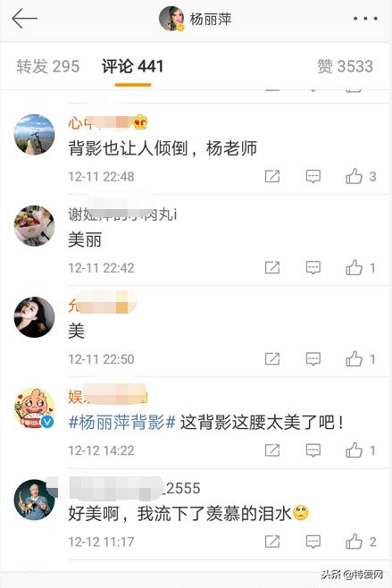 有网友在杨丽萍动态下留言:“这么美的背,不拔个火罐可惜了”,“让无数人羡慕嫉妒的背影”,“每次见你我都恨不得把我的大脸去掉一半,减肥减肥”、“好美啊,我流下了羡慕的泪水”、“我20岁都没有这个曲线,60岁就不用想了”、“60岁,我不敢看我自己了”……