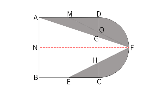 题目:如图所示,正方形ABCD的边长为10cm,半圆以CD为直径,F为半圆弧上的中点,E为BC的中点,连接AF、EF与BC相交于G、H点,求阴影部分的面积是多少?