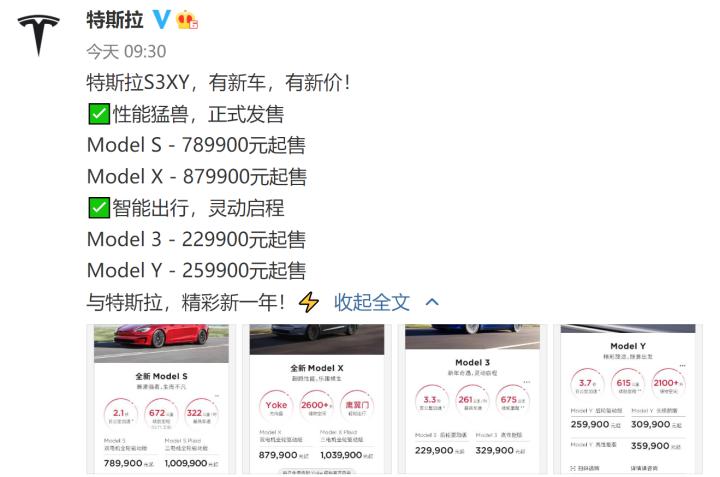 1 月 6 日,据特斯拉中国官网,特斯拉国产车型大幅降价,Model 3 起售价 22.99 万元,Model Y 起售价 25.99 万元,创历史新低。