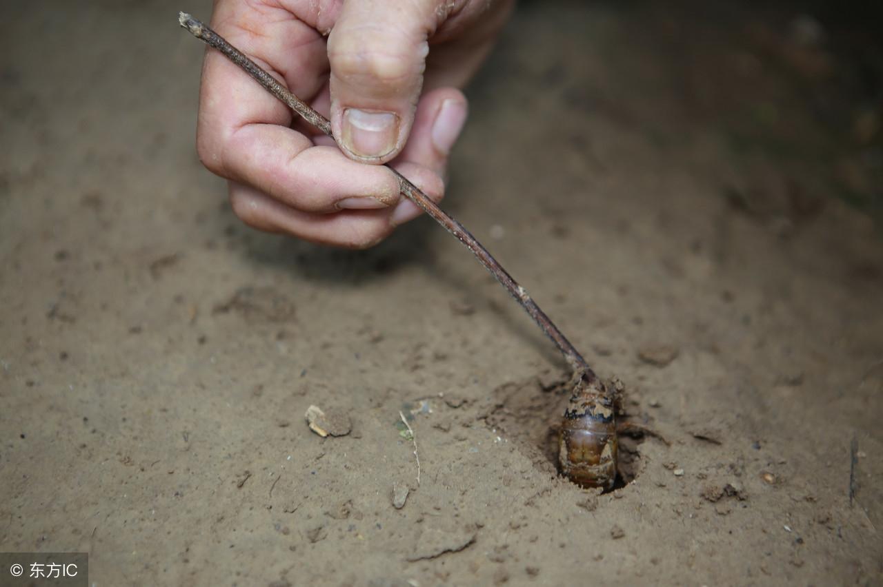 还有一种方法是针对还未出土的金蝉,在有金蝉出没的树木周围或附近的草丛里仔细寻找,会发现有若干的小洞口,就是金蝉的藏身之地。往这些蝉洞灌水时,金蝉为了不被淹死会爬出洞来,你在边上等着就好。如果一直不出来,就用细小的树枝探入洞中,被淹的金蝉以为可以逃出去,会乖乖抓住树枝爬出来,感受到有重量后把树枝拎起来,就能捉到金蝉了。