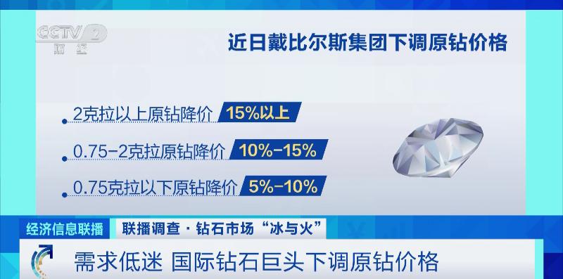 业内分析人士指出,作为行业上游的头部企业,戴比尔斯降价的目的,一方面是希望提升销售业绩,另一方面也希望给中游加工商更大的利润空间,以提振市场需求。
