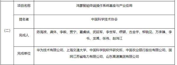 其中," 鸿蒙智能终端操作系统基座与产业应用 " 等提名 2023 年度国家科技进步奖。