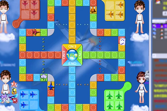 飞行棋有棋盘、棋子和骰子,其中棋子的颜色共有四种,棋盘上也有相对应的四种颜色格子排列,每名玩家各拿一种颜色的棋子。任意玩家掷骰子点数为6即可起飞,当所有棋子都到达终点,就可以结束游戏。