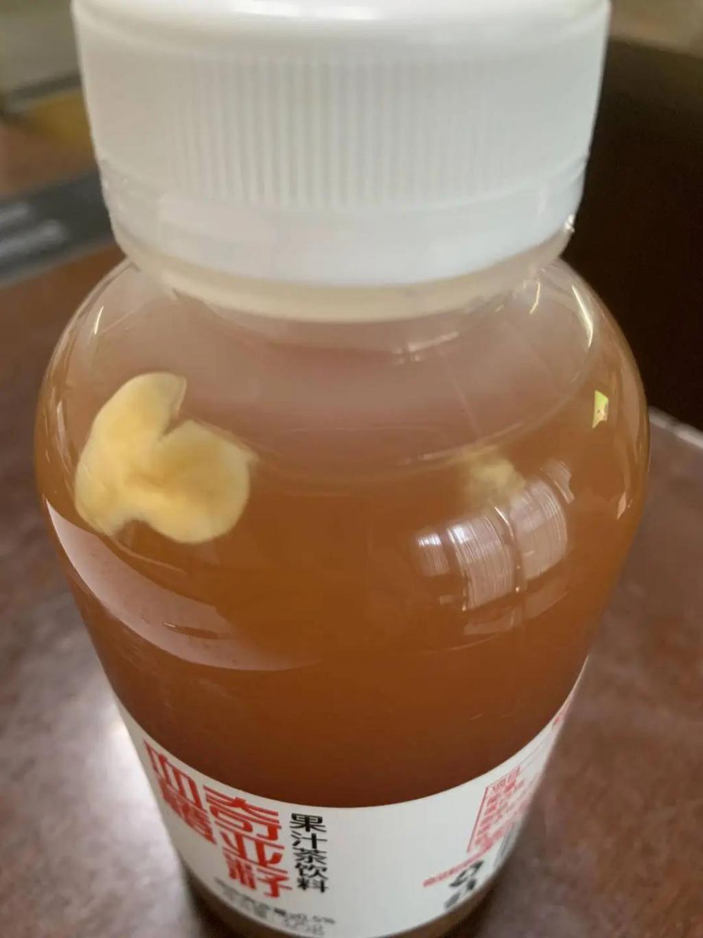 9 月 1 日,镇江市民孔女士在南京山姆会员商店购买了一整箱的 " 血橙奇亚籽果汁茶饮料 "。价格为 89.9 元。一箱 12 瓶。不想喝至第三瓶时,竟然发现未开启的饮料瓶中,漂浮着一大一小两块异物。