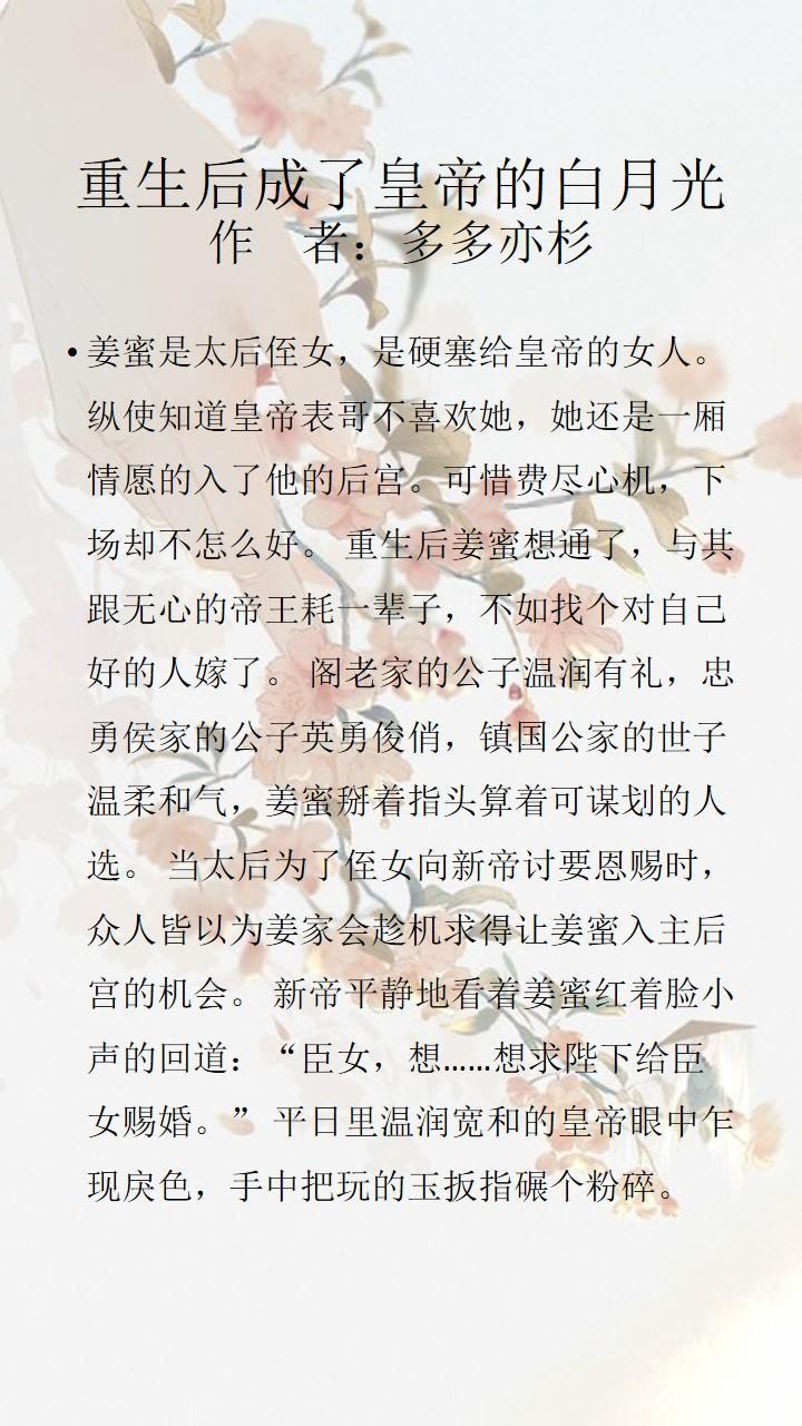1、重生后成了皇帝的白月光 作 者:多多亦杉