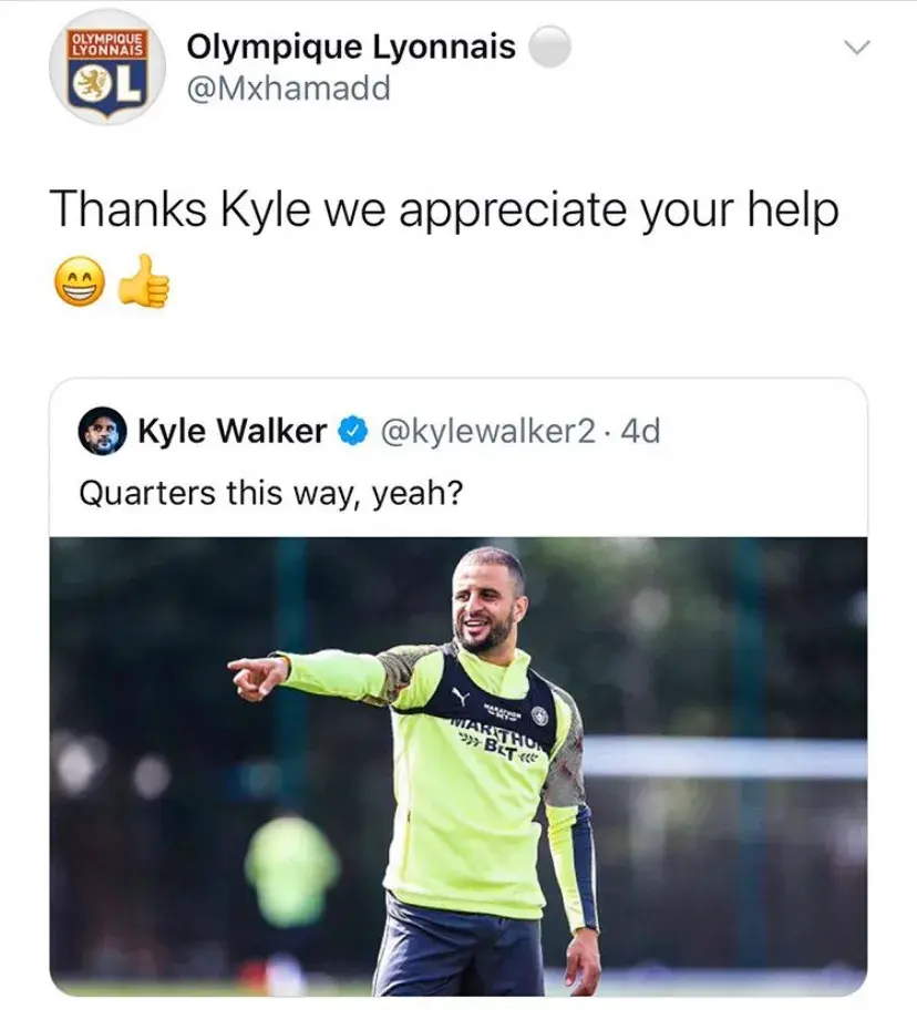 前不久在和里昂大战前又在推特发文说道:四强怎么走?这里吗?