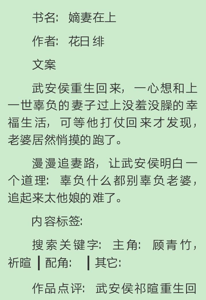 花日绯的作品还是挺不错的。小编看过了,虽然是篇原谅渣男主的文,但还是值得一看的。前世男主冷落女主,女主却在他没落时不离不弃,在男主终于走出阴霾想要弥补女主时,女主却为了救男主死了。男主重生后想要挽回女主,女主却不想嫁给他了。于是追妻一路漫漫……自然是各种宠宠宠。