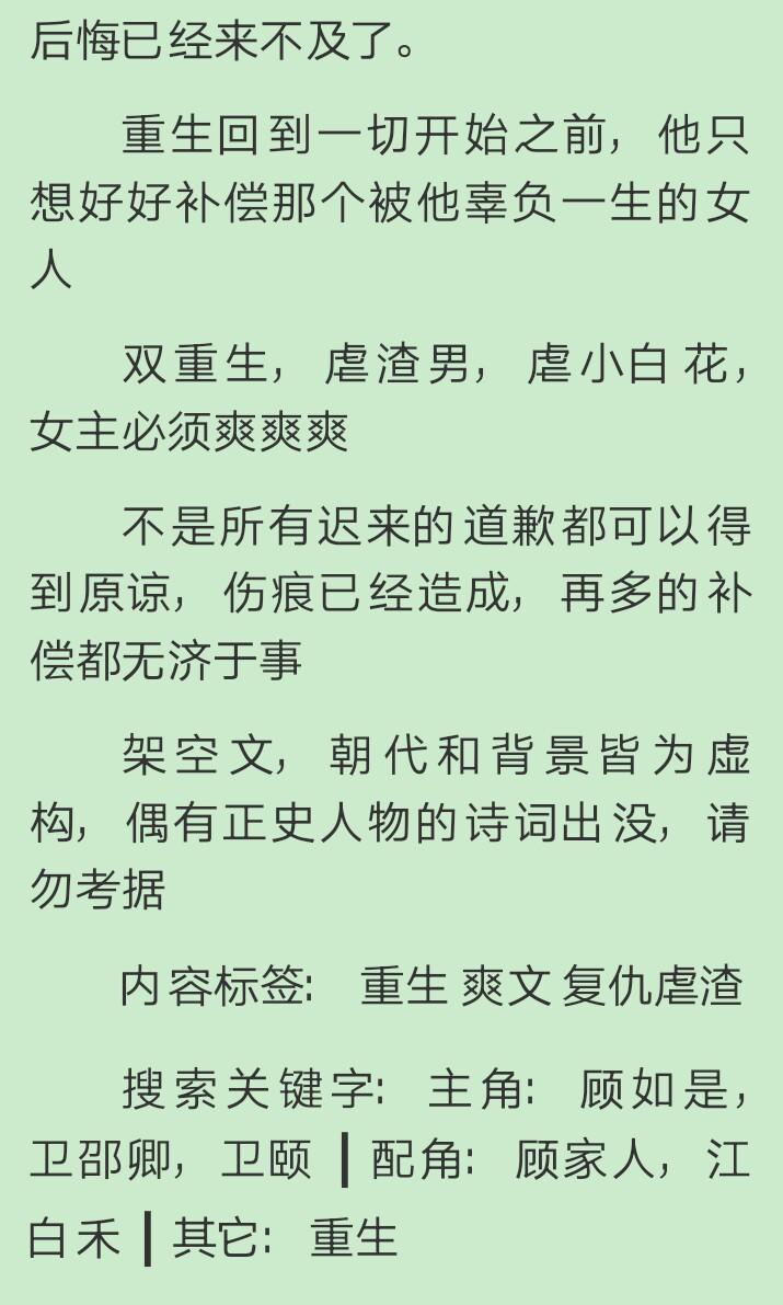 [推文]古言:男女主双重生,你是原谅渣男还是另寻良人?