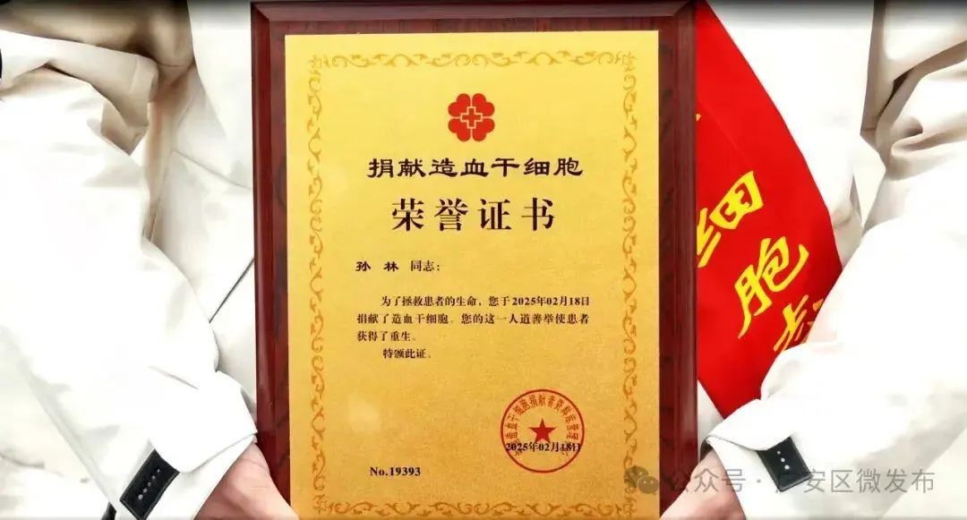 2月18日,27岁的广安市人民医院规培医学生孙林前往成都,完成了造血干细胞捐献,受捐者是一名身患血液类疾病的陌生孩子。