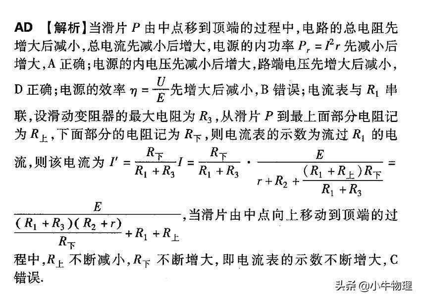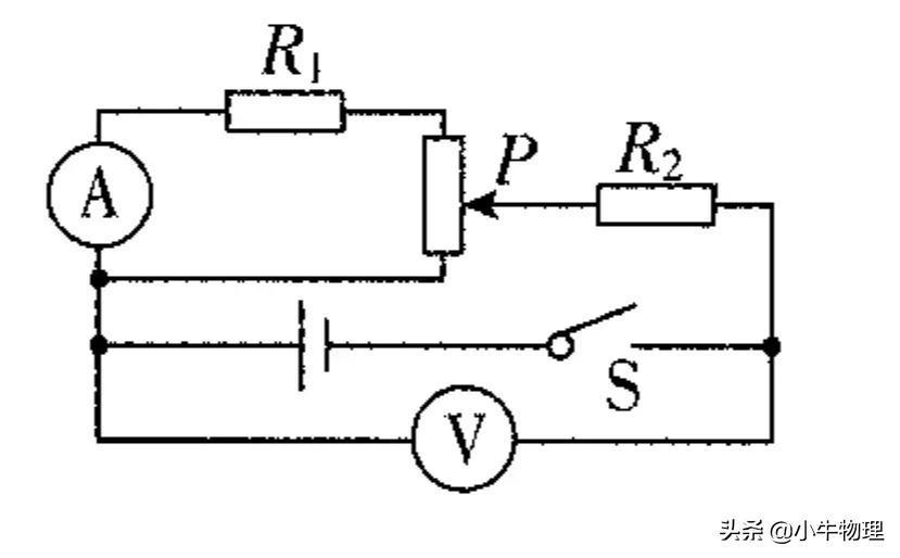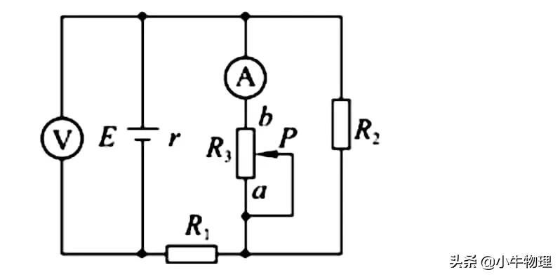 的电路中,电源内阻不能忽略,R₁阻值小于滑动变阻器的最大阻值,初态时滑片P位于滑动变阻器的中点,P由中点向上移动到顶端的过程中()