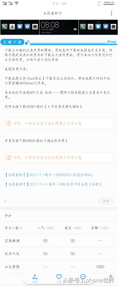 4.进入主题爱好者,里边有很多华为分享的他们自己制作的主题,这些主题要比主题商店里的主题有意思。