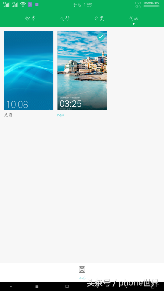 7.移动完成之后打开桌面主题,找到我的,你会发现一个新主题,那个就是你下载的那个,应用它就ok了