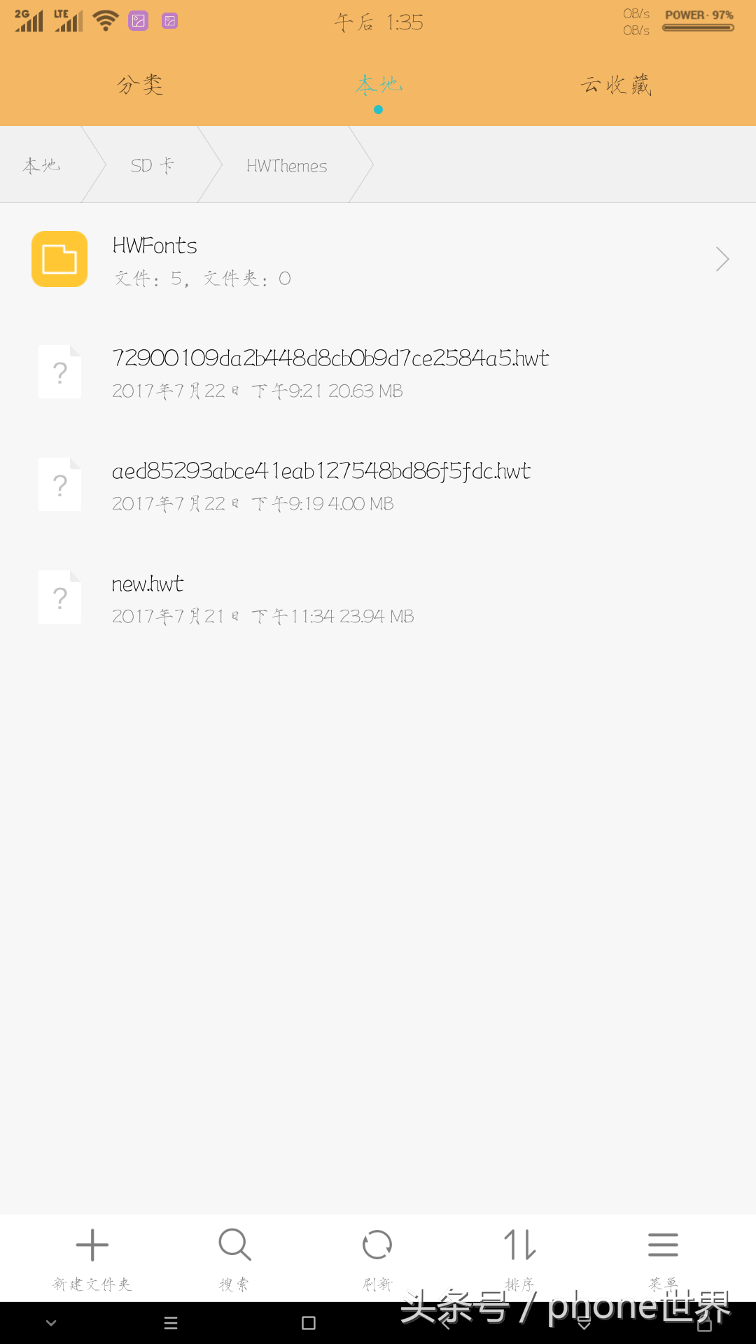 6.下载完成之后,找到下载的文件包(文件是一个以.hwt结尾的)移动到你默认存储的HWThemes文件夹内