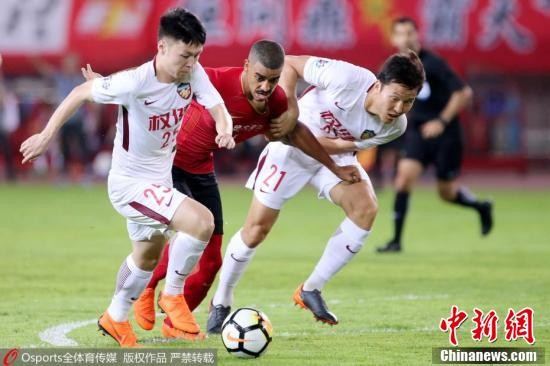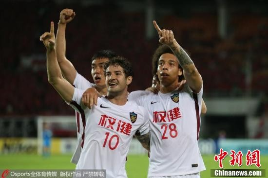 高拉特(中)上下半场两次为恒大队取得领先,但帕托和王杰两次为权健队闪电追平比分。权健凭借客场进球优势淘汰恒大晋级亚冠八强。