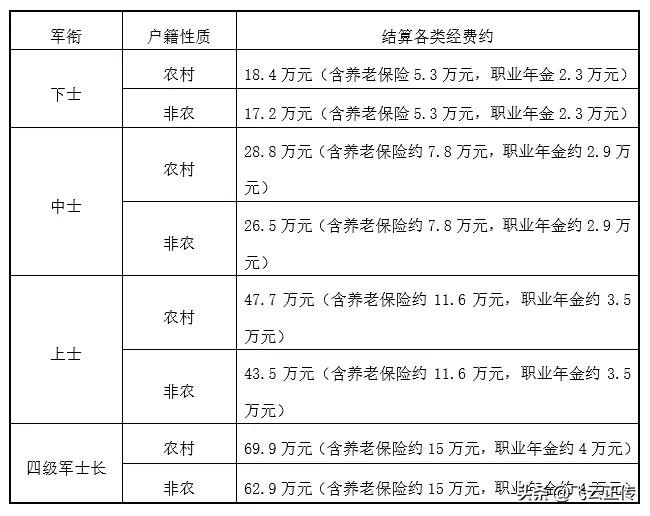 以上按照复员到县市以下地区测算,复员到大中城市安家补助相对较少,此处不一一计算。