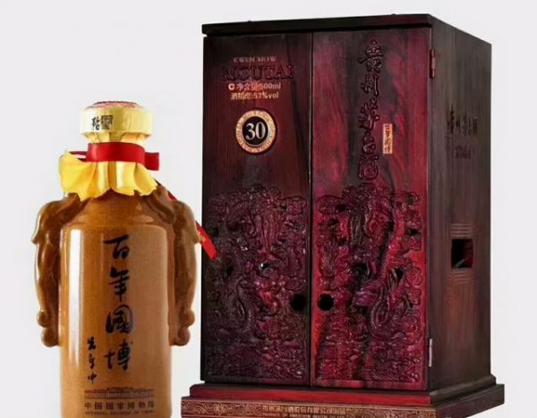 百年国博酒是在2012年7月9日为了庆祝中国国家博物馆100周年,由中国国家博物馆与贵州茅台酒股份有限公司联合推出的“百年国博”纪念酒,与市面上很多其他号称30年陈酿不同的是,此酒是以纯粹的30年年份酒为基酒进行勾兑。“百年国博”四个字是由前任国家博物馆馆长吕章申书写。
