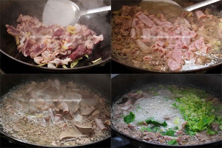 2热油,下姜丝爆香、盐后倒入罗汉肉翻炒;