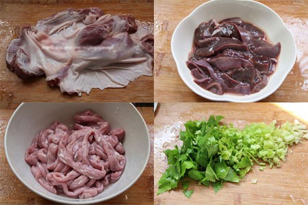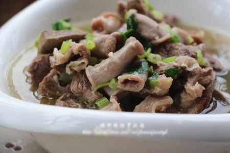 用料:猪肝;粉肠;罗汉肉;芹菜;姜;盐;