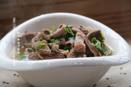 4肉要选罗汉肉,罗汉肉其实就是猪肝沿,由于靠近肝脏部位,故称猪肝沿。因有运动,肉质细嫩;同时夹杂筋膜,有韧性,耐嚼吃起来鲜甜还带有嚼劲。粉肠如果你不介意的话,带点粉吃更赞,所谓的粉肠、粉肠,有粉才好吃,猪肝等汤沸腾后迅速下锅,汤上2分钟就可以了,过了口感就老了,起锅时再撒些芹菜。