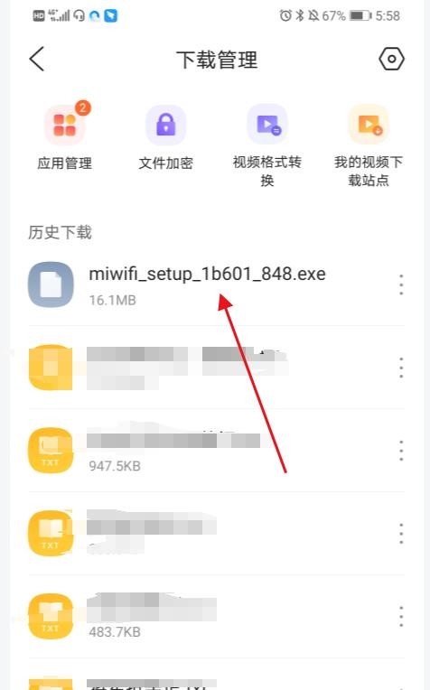 第二步点击下载管理长按小米WiFi的驱动文件(注意此文件手机打不开长按即可)