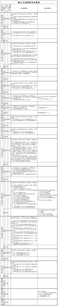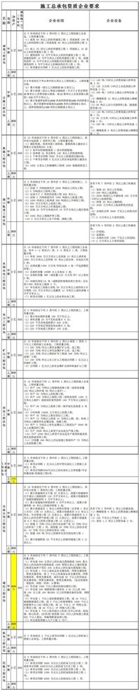 下表是根据《建筑业企业资质标准(征求意见稿)》对于企业要求进行汇总的详情