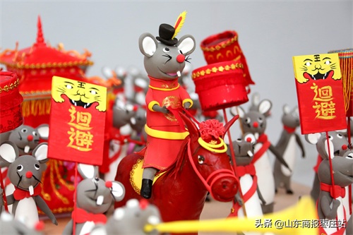 山东商报枣庄讯(通讯员 吉喆)1月16日,山东省枣庄市民间艺人王欣历时1个多月创作完成了《老鼠嫁女》面塑作品。该作品以我国民间传说“老鼠嫁女”的故事为素材,用面塑技艺把鲁南地区婚嫁习俗巧妙地融为一体,场景喜庆、诙谐,近百个姿态各异的生肖鼠惟妙惟肖,表达对鼠年的美好期盼和祝福。