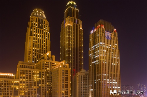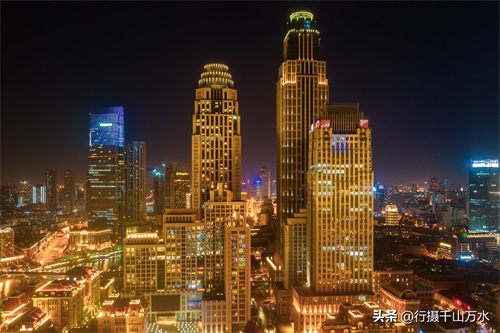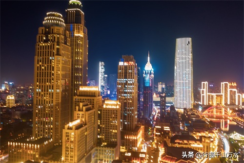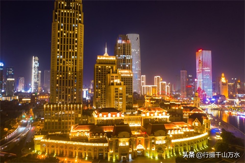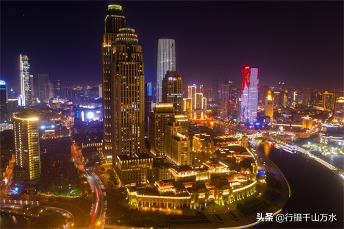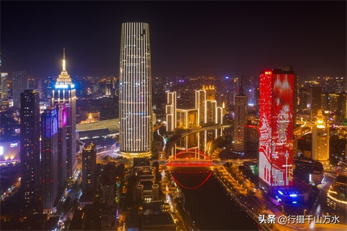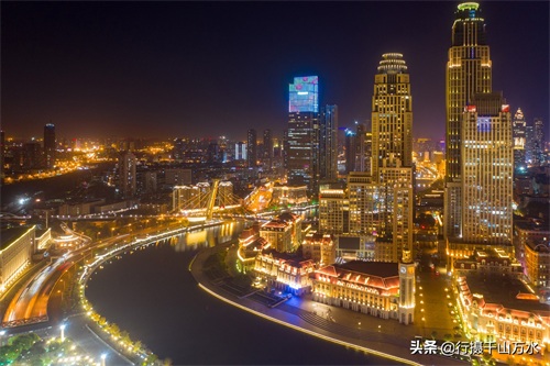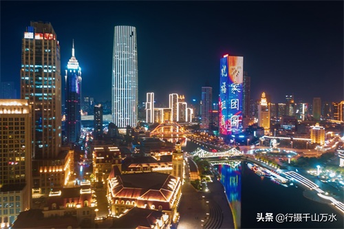 航拍天津津湾广场,高楼林立灯火辉煌,这里有最美的海河夜景