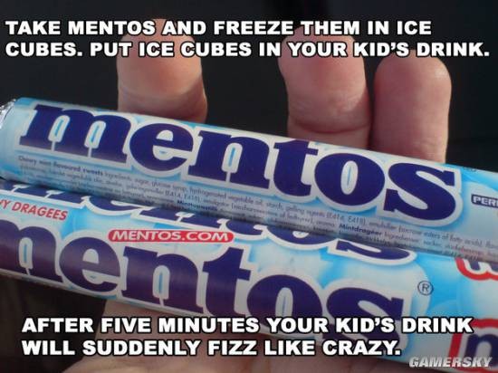 往他的饮料里加一块冷冻的曼妥思,五分钟后看他的反应。