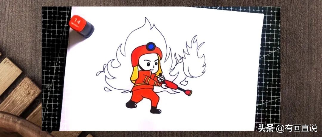 创意儿童画教程:卡通简笔画消防员,消防安全主题手抄报必备