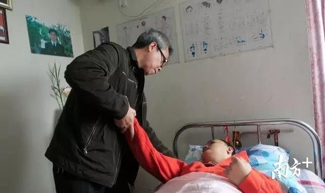 △坚毅---2015年11月,深圳,父亲陈如豪正在照顾18年前因公成为植物人的儿子陈文亮。18年,他从未放弃病床上的儿子。头发花白,却是满眼坚毅。