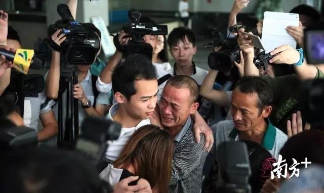 △激动:2015年,深圳,时隔18年,被拐卖的小青终于与亲生父母团聚。父亲抱着儿子,失声痛哭。