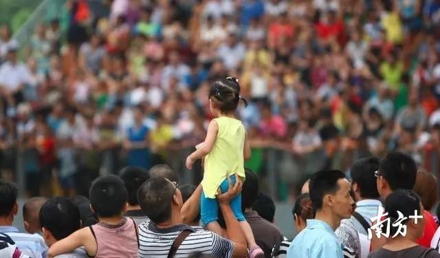 △自豪--一位父亲为了自己的女儿能够看得见前方的演出,正用力把女儿托起。我们是否还记得小时候有多少次父亲也是这样托着自己呢?