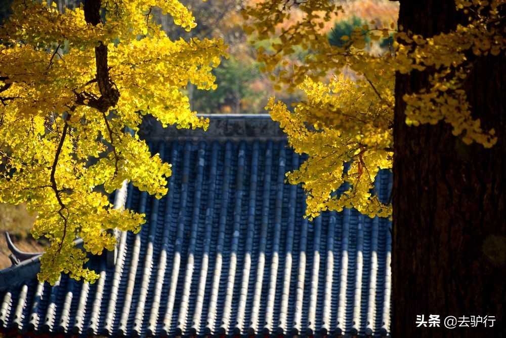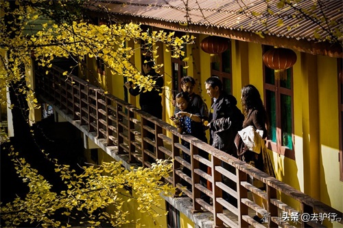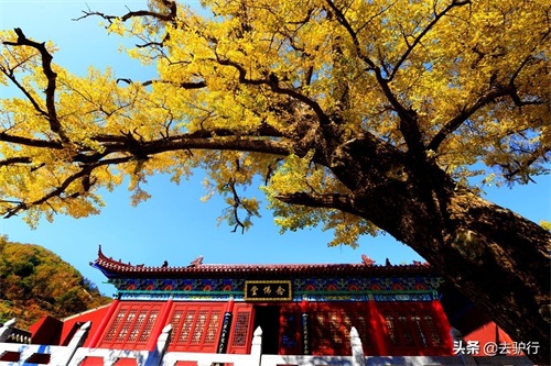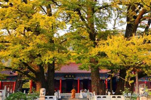 推荐河南文殊古寺,主要是因为门前那几株千年银杏树。每到深秋来临之际,寺院内那5株千年银杏逐渐泛黄,风来的时候寺庙内便成了一片金色的海洋,美不胜收。老和尚偶然间从银杏下穿过,也成为了一道风景线。