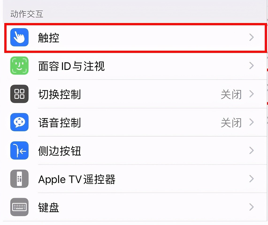 7、开启自定操作截屏,可在“辅助触控”中,选择“轻点两下”。