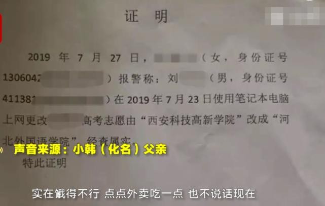 据悉,女生的高考艺考成绩为171分,第二志愿报考的是西安科技高新学院男生的成绩比女生低40分左右,为了能让两人上同一所学校,男生将女生的第二志愿改成和河北外国语学院。
