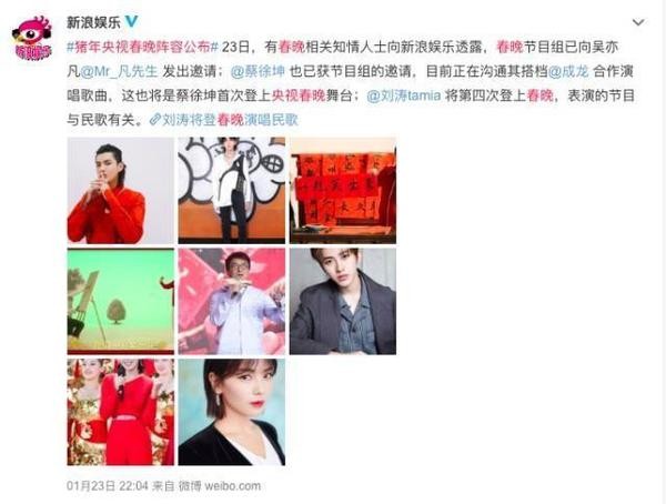 央视猪年春晚阵容公布啦,来看看有没有你家爱豆?
