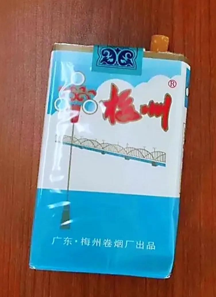 梅州牌。一看就知道是梅州产的,蓝包装,我们那叫青梅州,九十年代一块二毛,后来涨到二块。还有一种硬盒的金梅州三块。我记得的时候是1.6元,我爸每次给我2元叫我买单包都有4毛钱跑腿费。后来卖到1.8元,每次只有2毛。再后来卖2块一包之后我的跑腿费没了,人也长大了,烟也不见了。后来才知道是改叫五叶神了,一样的烟丝,价贵了好多。