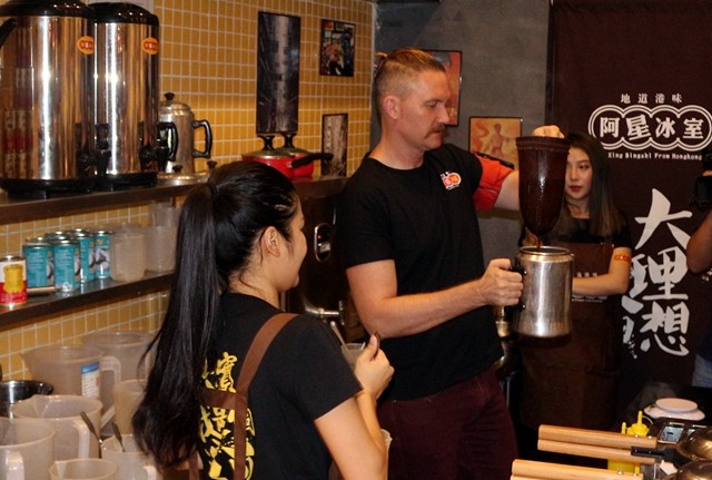 9月10日晚,当来到位于南宁市火炬路的阿星冰室,门口已经被最多粉丝围的水泄不通,原来冰室今天还邀请来香港著名电视艺人——布伟杰亲临活动现场。说起“布伟杰”这个名字,估计没人知道,但一看到他那张脸,大家就会恍然大悟:原来是他!大家如果经常看港剧可能还记得TVB剧中见惯见熟的一位老外演员,经常扮演老外、老板等角色。