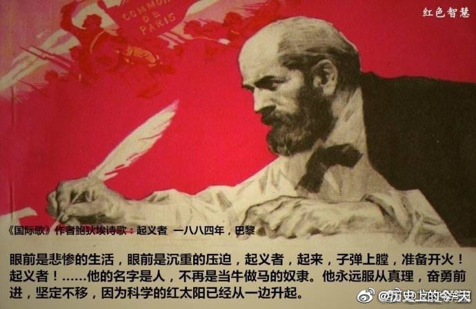 在他写下那首著名的《国际歌》17年后,也是在他逝世后的第二年,1888年6月比他年轻32岁的法国工人作曲家皮埃尔·狄盖特发现了这首诗词,并以满腔的激情在一夜之间为《国际歌》谱写了曲子,并在里尔的一次集会上指挥合唱团首次演唱,很快这支战歌便迅速的传遍整个法国,之后便从此传遍世界。