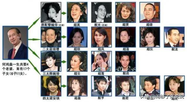 第二年,何鸿燊在一次舞会上认识了比自己小39岁的广州姑娘梁安琪。之后,梁安琪成为何鸿燊的固定舞伴,被安排到何家赌场账房做文员,还开了一家舞蹈学校,自己当老师。1989年,梁安琪正式成为“四太太”。陈婉珍为何鸿燊生了1男2女。而梁安琪则为何鸿燊生了3男2女。