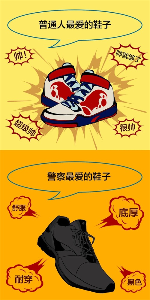 一双纯黑色的运动式皮鞋是每个警察的标配