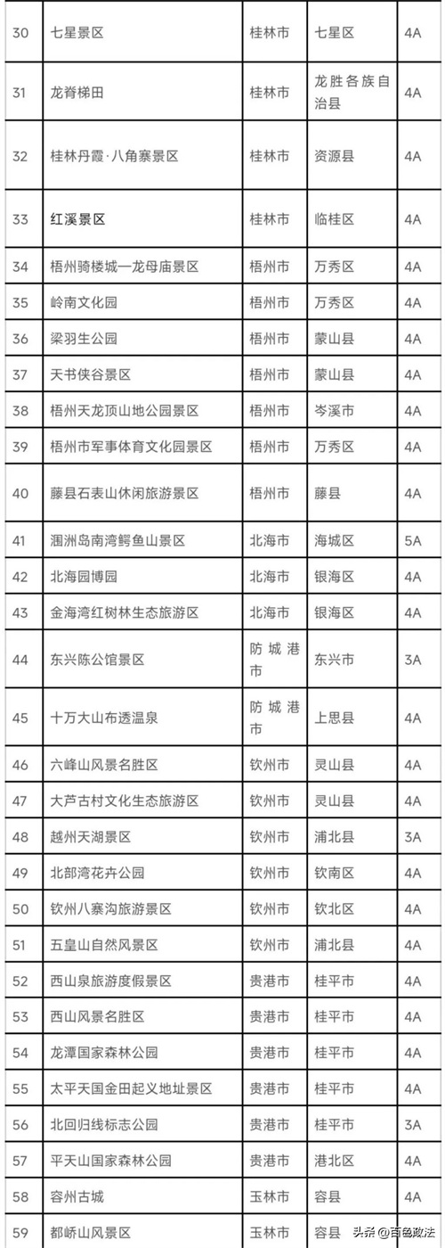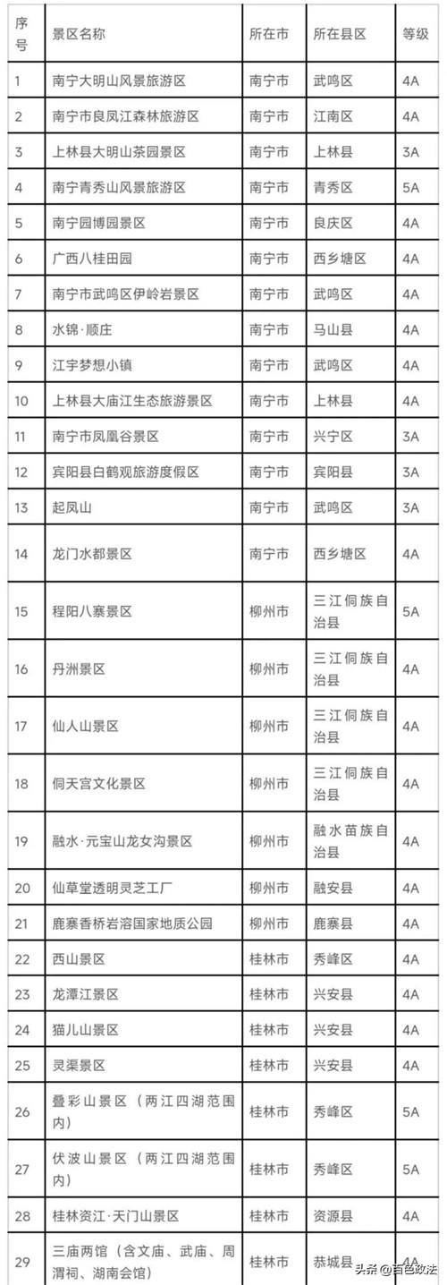 广西国家A级旅游景区