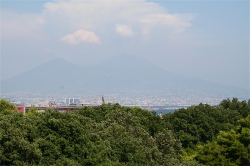 远处朦朦胧胧的维苏威火山。