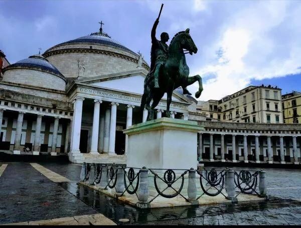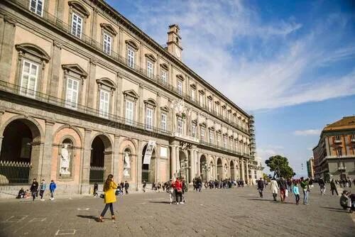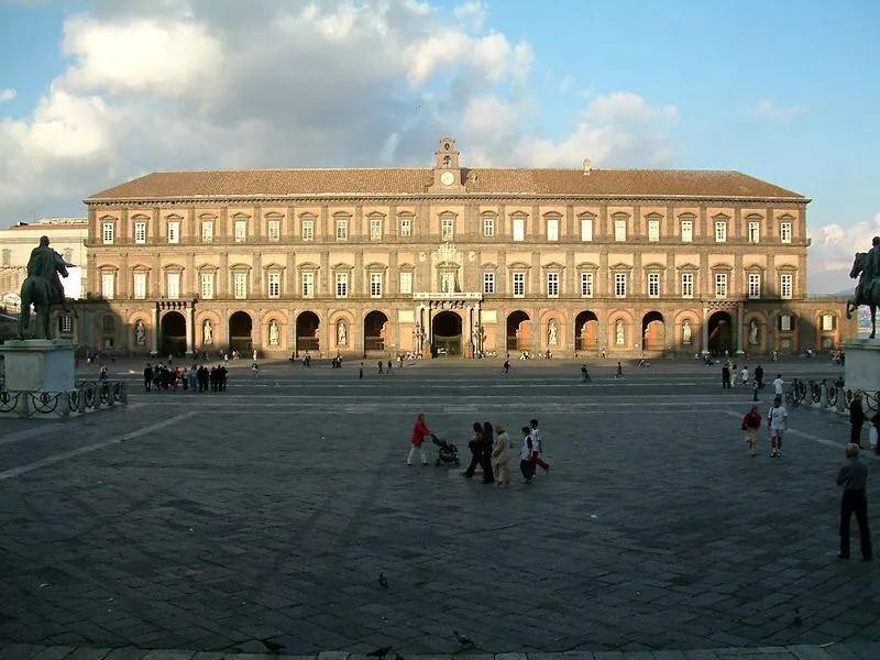 那不勒斯王宫建于17世纪,曾是总督和国王的寓所,现为国立图书馆。王宫位于那不勒斯市中心,是一栋米白色的3层建筑。在相隔的拱门间放置了8尊那不勒斯重要国王的雕像。整栋建筑质朴大气,格外开阔。
