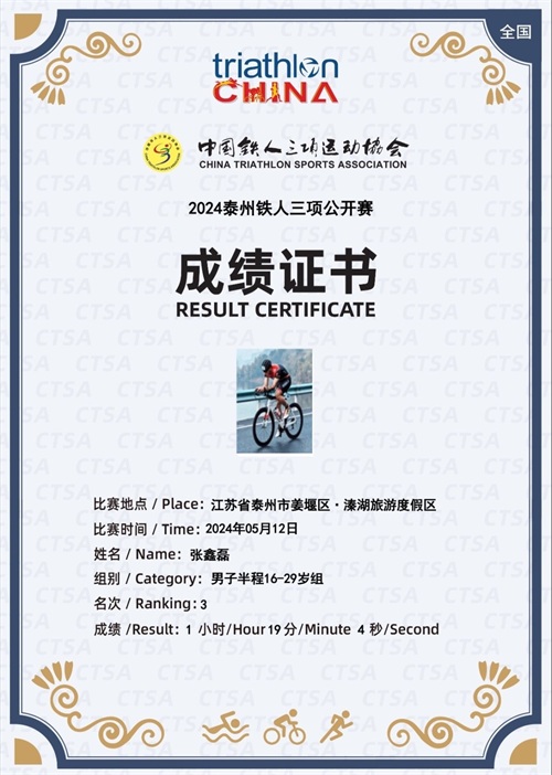 铁人三项是将游泳、自行车和跑步这三项运动结合起来而创造的一项新型的体育运动项目,是考验运动员体力和意志的运动项目。“刚刚开始接触铁人三项的时候,我还不太会游泳,于是花了半年时间自学。”问起是什么缘由让他接触铁人三项这项运动时,张鑫磊直言,“这是我第二次参加全国比赛,我实在是太热爱这种挑战自我的感觉了!”然而,成功之路并不容易,在溱湖的水中,他脑袋里想的只有平时训练的技术动作,最终很顺利地完成了游泳赛段,而在自行车和跑步赛段,面对强有力的竞争对手的激烈追逐,张鑫磊感到了前所未有的压力,“当时,我觉得自己的腿快抽筋了,有点不听使唤了,只记得要朝着终线点不断冲刺。”在他的咬牙坚持下,最终以10多秒的差距战胜了第四名,一位国家队退役选手。