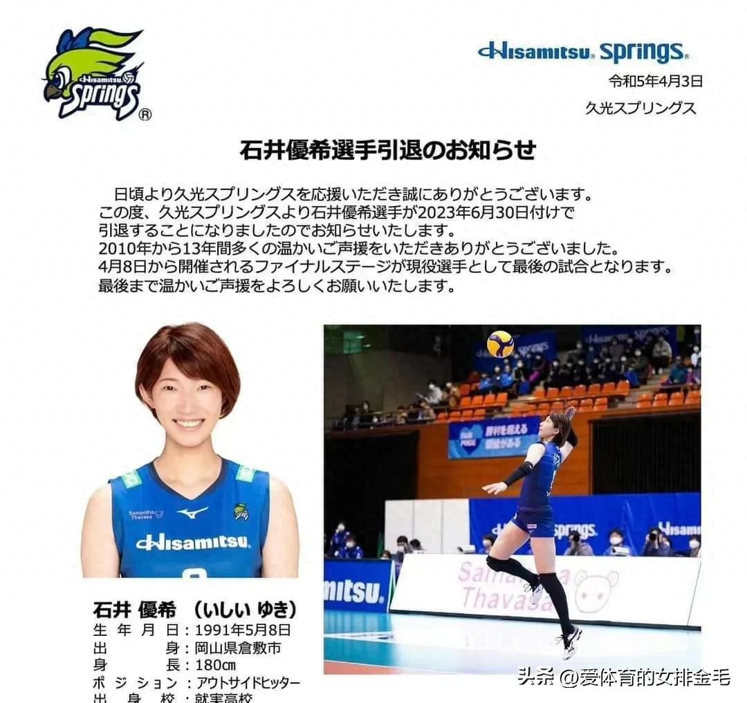 这个消息还是比较让人吃惊的,出生于1991年的石井优希今年才32岁,而且从日本联赛来看打得还不错,又拥有多年的世界大赛经验,那么早退役让人可惜!