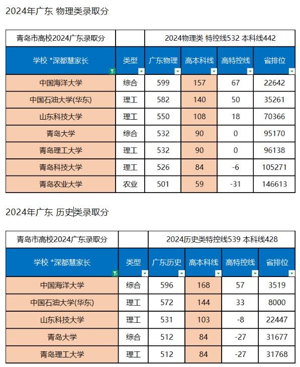 青岛市大学排行及2024年广东录取分