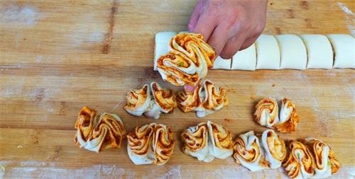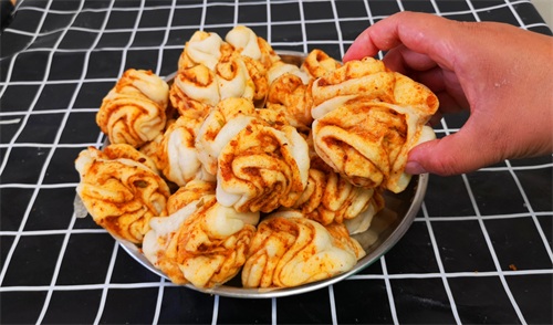 这个蓬松宣软、层次丰富的小花卷就做好啦,不光咸香美味,还特别好吃。