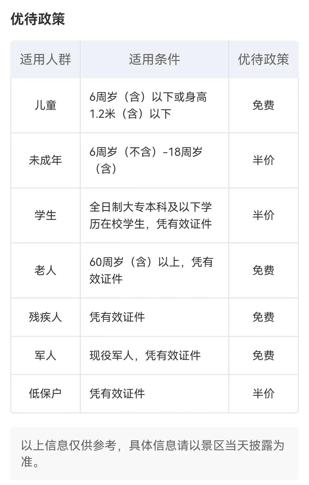 合肥野生动物园免票政策,这6类人员免门票,具体包括:儿童,老人,残疾人,现役军人等免费。