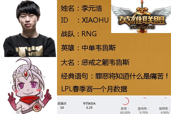 在4月9号进行的RNG对战IG的春季赛中,小虎连续两把祭出了他的韦鲁斯,并且都以不错的数据迎接了比赛的胜利,下面就和小编一起看看小虎手中的韦鲁斯应该处理好哪些小细节。
